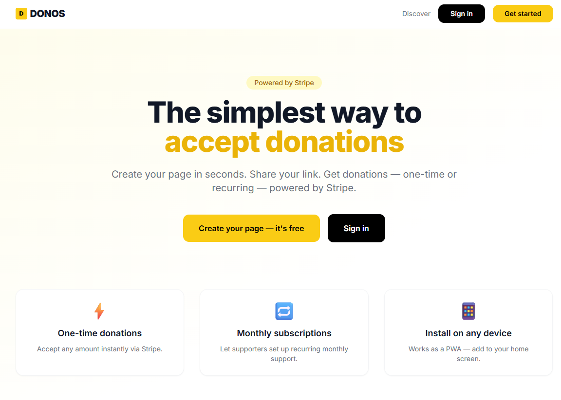 LiveA donation platform where creators get a shareable link and collect one-time or monthly recurring donations — powered by Stripe Connect with direct payouts.