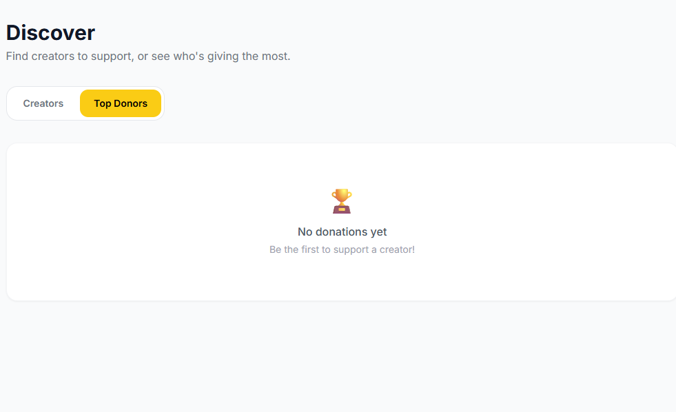 - →Creators register, pick a username, and instantly get a shareable donation link at